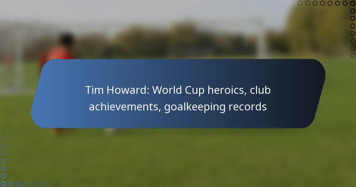Tim Howard is celebrated for his extraordinary performances as a goalkeeper, particularly during the 2014 World Cup, where his remarkable saves against Belgium showcased his skill and leadership. With a distinguished club career that includes significant achievements at Manchester United, Everton, and Colorado Rapids, he has solidified his legacy in soccer history. Additionally, Howard holds several goalkeeping records, including the most saves in a single World Cup match, further highlighting his impact on the sport.